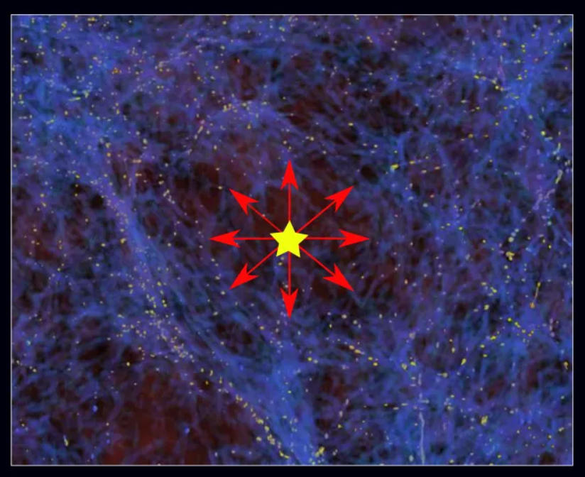 (Νίκος) – Με εξελιγμένες παρατηρήσεις σχεδόν σε όλο το ηλεκτρομαγνητικό φάσμα1 οι επιστήμονες έχουν εντοπίσει “νήματα”, κοσμολογικές κλωστές που ενώνουν τους γαλαξίες. Bρισκόμαστε μάλλον ανάμεσα, ή καλύτερα μακριά από τις νηματοειδείς δομές (Cosmic filaments). Σε μία τρύπα! [Εικόνα 1]