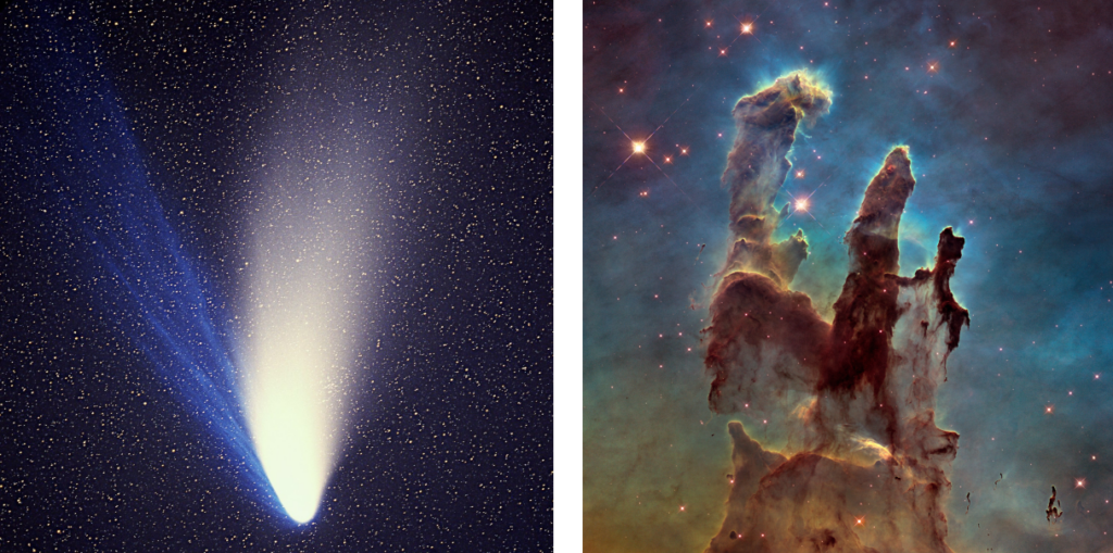 Αρχικά, όσο παράξενο και αν μας ακούγεται από την καθημερινή μας εμπειρία, το φως όντως “σπρώχνει”. Το ότι δεν το καταλαβαίνουμε οφείλεται στο γεγονός ότι το σπρώξιμο αυτό είναι εξαιρετικά αδύνατο – θυμηθείτε ότι στους βαρυτικούς ανιχνευτές, κάποια από τα ισχυρότερα λέιζερ, καταφέρνουν να μετακινήσουν καθρέφτες της τάξης των 40 kg, σε αποστάσεις μικρότερες από τη διάμετρο του πρωτονίου! Ωστόσο, απέναντι σε πιο ελαφρά σώματα, όπως η σκόνη που συναντάμε στο διάστημα, τα αποτελέσματα της πίεσης της ακτινοβολίας είναι πολύ πιο εμφανή (Εικόνα 1).